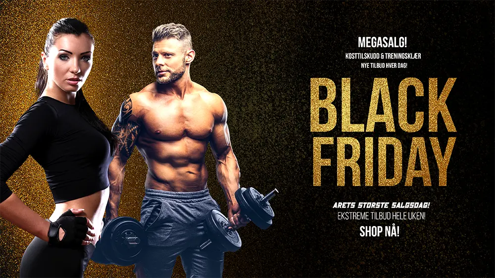 Bli med på vårt Black Friday-Salg – men pass på å være ute i god tid slik at du med sikkerhet får handlet dine favoritter blant kosttilskudd, treningsklær og treningstilbehør til lavest mulig pris.