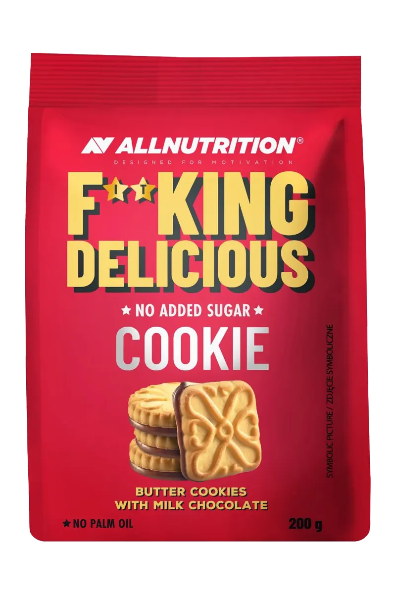 ALLNUTRITION FITKING DELICIOUS BUTTER COOKIES er sprø, smøraktige kjeks uten tilsatt sukker og palmeolje, som smaker som den beste cheat meal – men i en sunnere versjon! Sprø, smøraktige kjeks kombinert med fløyelsmyk melkesjokolade? Høres ut som en drøm! FITKING DELICIOUS BUTTER COOKIES gir deg en perfekt balanse mellom sødme og sprøhet som smelter i munnen. Hver bit gir deg et lite øyeblikk av nytelse!