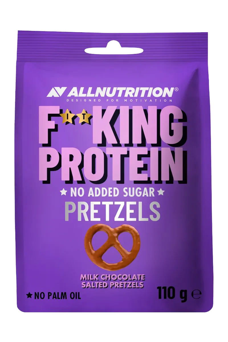ALLNUTRITION FITKING PROTEIN PRETZELS er proteinsnacksen for folk som ikke vil velge mellom smak og sunnhet! Sprø pretzels med havsalt, dekket av proteinrik melkesjokolade, gir en unik smak og en solid dose protein. En porsjon på 100 gram av denne deilige snacksen inneholder hele 18 gram protein. De er derfor ideelle for de som er fysisk aktive og opptatt av et balansert kosthold.