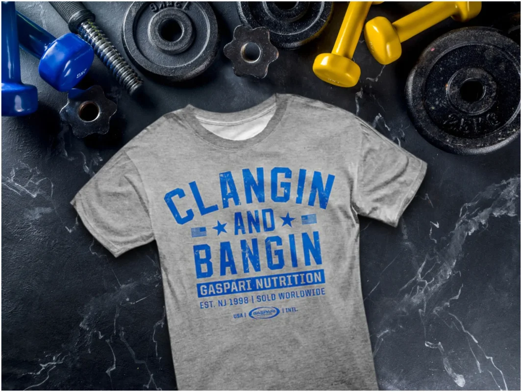 Liker du å føle deg komfortabel, men også se bra ut? Med en Gaspari T-skjorte vil du kombinere disse to funksjonene. Denne høykvalitets t-skjorten er laget av 95 % bomull, men litt spandex er lagt til for større komfort og fleksibilitet. Det store blåtrykket “Clangin and Bangin” legger til stil, og selve uttrykket i engelsk slang refererer til å trene tung styrke. Du kan bruke den på treningsstudioet for å motivere deg selv, så vel som på byen, når du vil fremheve figuren din. Vis verden hva som virkelig er viktig for deg sportslig, men stilig med en T-skjorte fra Gaspari Nutrition!