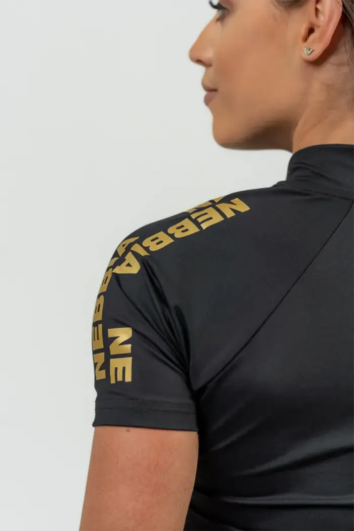 Funksjonelt materiale. Stilig design. Maksimal ytelse. Denne tekniske T-skjorten er perfekt for intens trening. Denne funksjonelle T-skjorten fra NEBBIA er det perfekte tilskuddet til garderoben din. Den er laget av et komfortabelt materiale med utmerkede tekniske egenskaper som gir full bevegelsesfrihet og sikrer optimal holdning. Ermene i dette designet fremhever vakkert linjen til skuldermusklene du trener hver dag. Og hvis du trenger å kjøle deg ned raskere etter en treningsøkt, vil du sette pris på den praktiske glidelåsen.