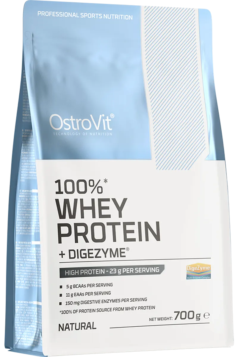 OstroVit 100% Whey Protein + DigeZyme er et kosttilskudd av høy kvalitet som er en kilde til myseproteinkonsentrat, samtidig som det forsyner kroppen med DigeZyme® multienzymkomplekset. Det er et preparat som er tilgjengelig i pulverform, utviklet for idrettsutøvere og fysisk aktive personer som ønsker å supplere kostholdet sitt med verdifulle forbindelser.