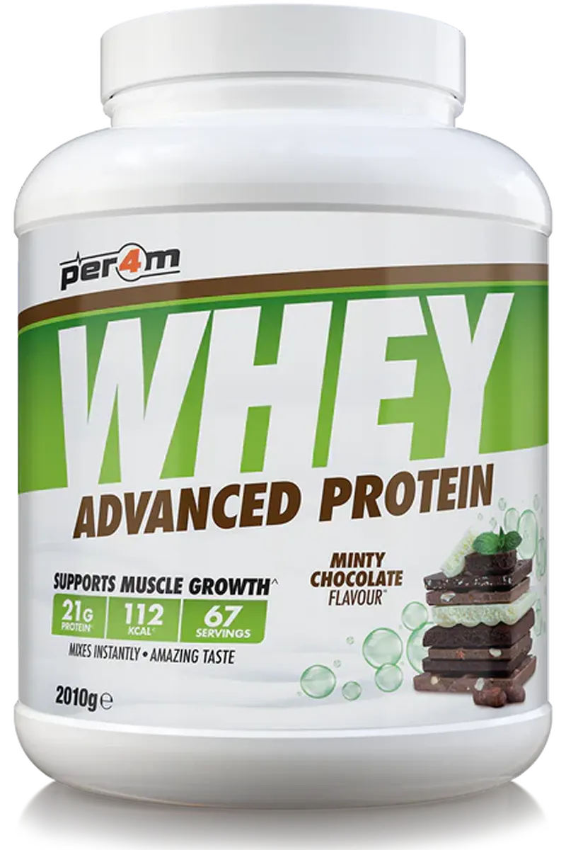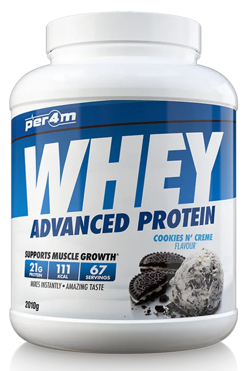 PER4M Whey Advanced Protein hjelper deg å yte bedre! Hver porsjon av dette deilige myseproteinet er fullpakket med 20-22 gram protein for å stimulere muskelvekst og støtte rask muskelgjenoppretting etter intens trening. Og best av alt, med PER4M trenger du ikke å ofre smak for resultater. Dette kraftige myseproteinet kommer i plenty av luksuriøse smaker! Den blandes lett med vann eller melk slik at du kan nyte proteinshaken til det fulle.