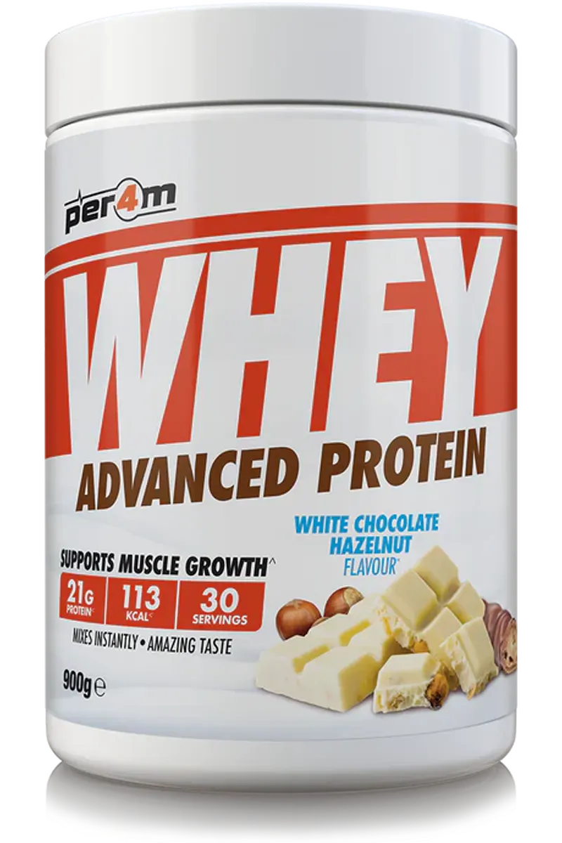 PER4M Whey Advanced Protein hjelper deg å yte bedre! Hver porsjon av dette deilige myseproteinet er fullpakket med 20-22 gram protein for å stimulere muskelvekst og støtte rask muskelgjenoppretting etter intens trening. Og best av alt, med PER4M trenger du ikke å ofre smak for resultater. Dette kraftige myseproteinet kommer i plenty av luksuriøse smaker! Den blandes lett med vann eller melk slik at du kan nyte proteinshaken til det fulle.
