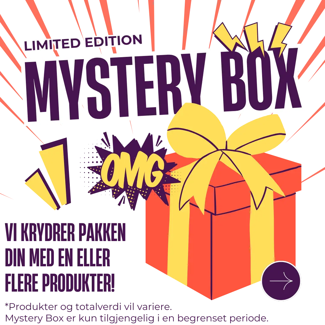 Mystery Box kan kun kjÞpes i et eksemplar per ordre og det er ingen returrett. Dette kan vÊre en fin mÄte Ä fÄ testet andre produkter pÄ eller til Ä sikre deg en rabattkode eller et gavekort pÄ.